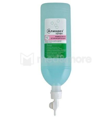 Дезинфицирующее средство (жидкое мыло) «Алмадез-профи» представляет собой готовую к применению бесцветную или соответствующую цвету применяемого красителя гелеобразную жидкость со слабым специфическим запахом или с запахом применяемой отдушки.